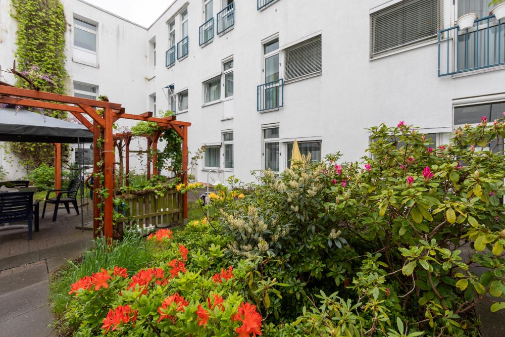 - 42 Einzel- und 6 Doppelzimmer, angeordnet rund um die grünen Innenhöfe