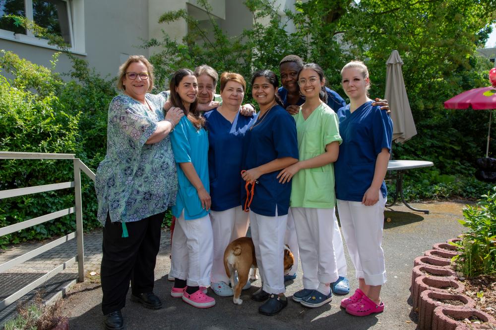Unser Team rund um die Pflegedienstleitung Birgit Ringhandt besteht aus examinierten Pflegefachkräften, Pflegehilfskräften, Azubis, dem Team der sozialen Betreuung, der Verwaltung unseres Hauses mit dem Sozialdienst sowie den Kolleginnen und Kollegen rund um den Bereich Küche, Hausreinigung und unser Hausmeisterservice.